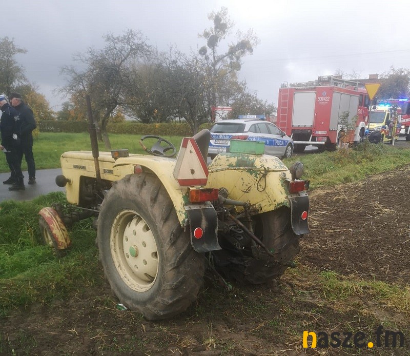 Jak informuje policja do zdarzenia doszło na prostym odcinku drogi. Kierujący traktorem marki Ursus mężczyzna z nieznanych przyczyn zjechał nagle do przydrożnego rowu.