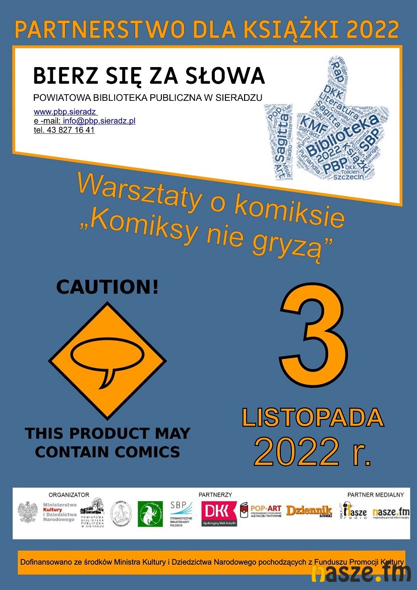 Warsztaty są elementem projektu „Bierz się za słowa&rdquo, realizowanego w ramach programu „Partnerstwo dla książki”. Program dofinansowany jest przez Ministerstwo Kultury i Dziedzictwa Narodowego ze środków Funduszu Promocji Kultury.