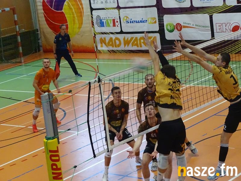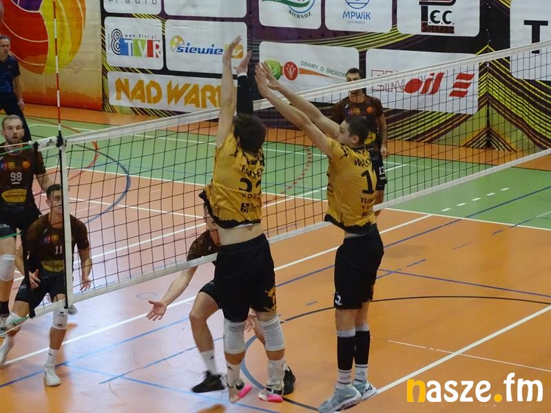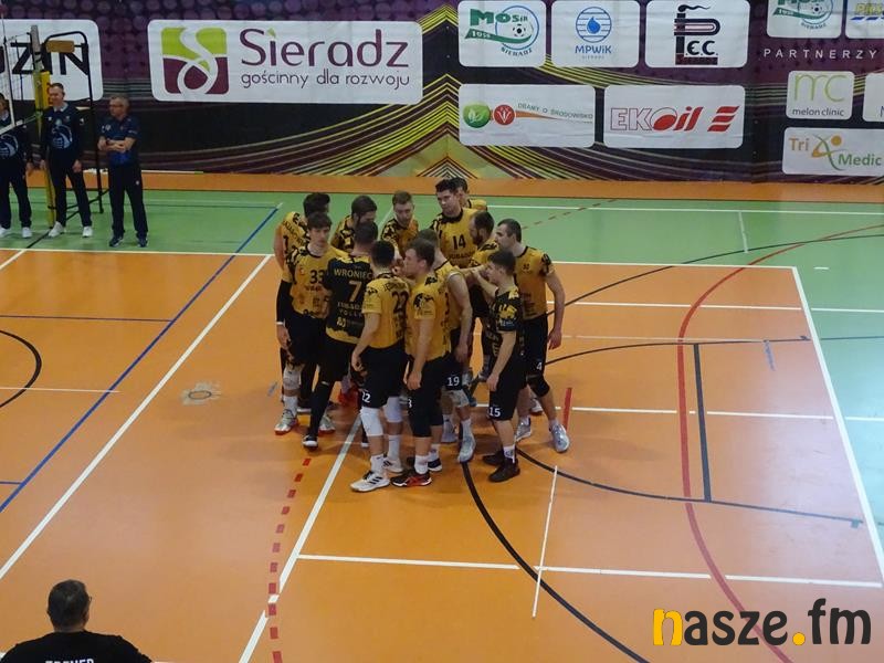 W pierwszym secie goście zyskali kilka punktów przewagi i sieradzanie byli zmuszeni gonić wynik. Udało się odrobić straty przy stanie 18:18. Trener gości wziął czas, ale na niewiele się to zdało. W następnej akcji znów zapunktowali gospodarze, a potem asa serwisowego zafundował Błażej Szymczak. Po ataku Mikołaja Wąskowskiego gospodarze mieli piłkę setową, a partię zakończyła punktowa zagrywka Patryka Smyrskiego. Set zakończył się wynikiem 25:20.