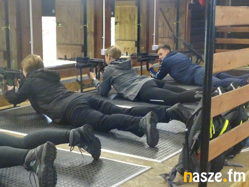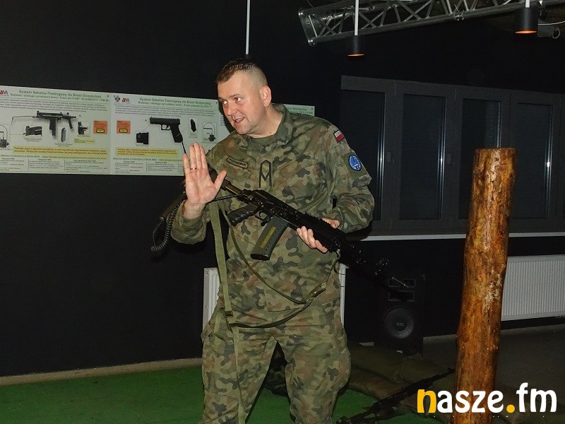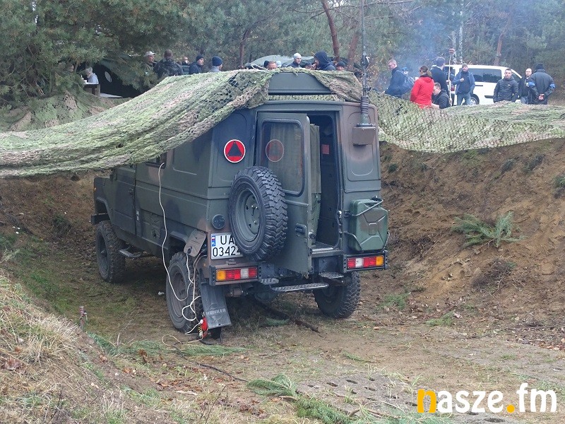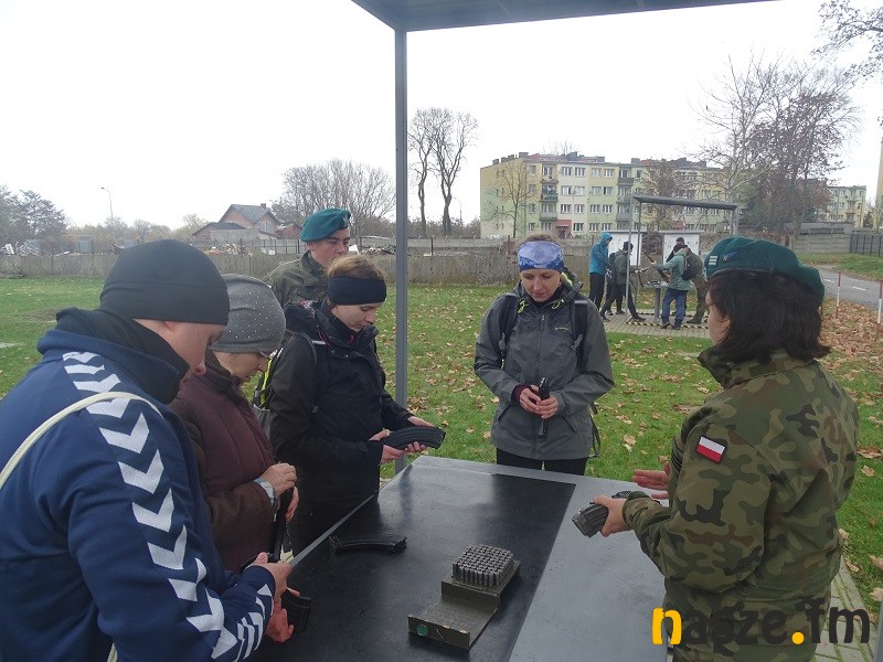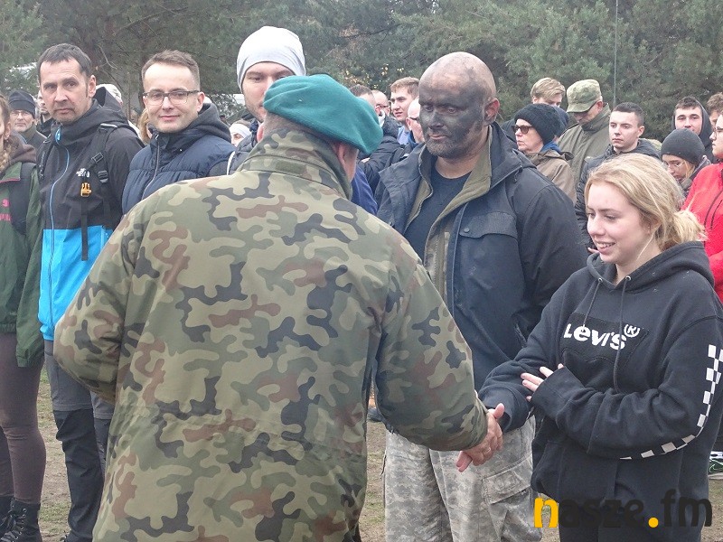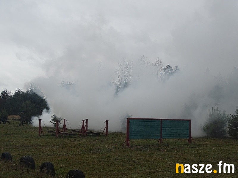 Część druga zajęć to już wojskowy plac ćwiczeń w podsieradzkim Sokołowie. Z kolei tam uczestnicy sobotniego treningu poznawali chociażby zasady survivalu. Żołnierze uczyli jak kamuflować twarze, czy maskować teren po miejscu swego pobytu tak, by przeciwnik nie zorientował się o naszym pobycie w tym punkcie w terenie. Kolejny element to budowanie ogniska typu Dakota wzorowanego na amerykańskich traperach. Kolejny punkt, do którego trafiali w grupach uczestnicy treningu to nauka wykonania stanowiska do pozycji strzeleckiej leżąc. Dalej specjalny tor przeszkód, czy wreszcie rzut granatem hukowym. Kto chciał mógł też przejechać się po poligonie wojskowym jelczem w charakterze pasażera na tzw. pace.