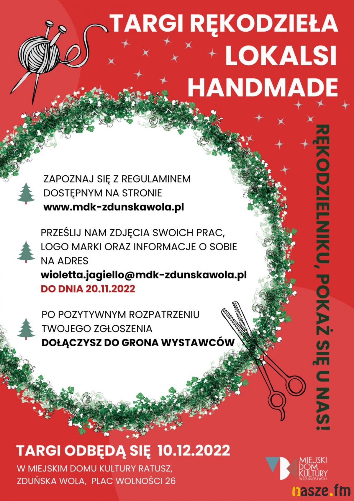 Jesteś rękodzielnikiem? Wykonujesz wyroby użytkowe, dekoracyjne? Chcesz nieodpłatnie zaprezentować swoje wyroby podczas targów rękodzieła? Miejski Dom Kultury Ratusz w Zduńskiej Woli przygotowuje się do 4. edycji Targów Rękodzieła "Lokalsi Handmade".