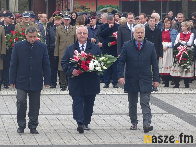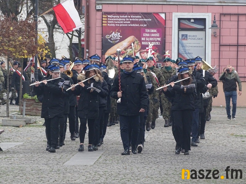 Po mszy św. w Bazylice Mniejszej uczestnicy uroczystości przeszli przed pomnik Poległym za Ojczyznę przy ul. Kościuszki, gdzie wiązanki kwiatów złożyli Mariusz Bądzior, starosta sieradzki oraz Paweł Osiewała, prezydent Sieradza. Następnie sieradzanie przeszli na plac przy pomniku marszałka J. Piłsudskiego, gdzie odczytany został list od ministra obrony narodowej.