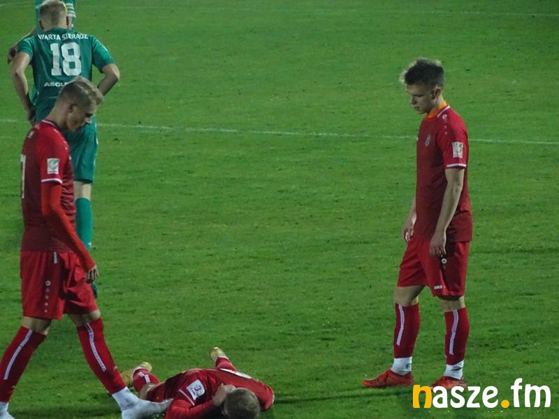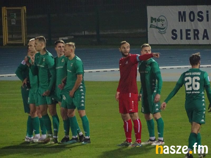 Sieradzanie stracili bramkę w 15 minucie. Sytuację sam na sam z bramkarzem wykorzystał Kamil Sabiłło. Pierwsza połowa zakończyła się wynikiem 1:1. Krystian Adamiak uderzył zza pola karnego, a piłka po koźle znalazła drogę do siatki. Tuż przed przerwą drugą żółtą, a co za tym idzie czerwoną kartkę otrzymał Michalski.