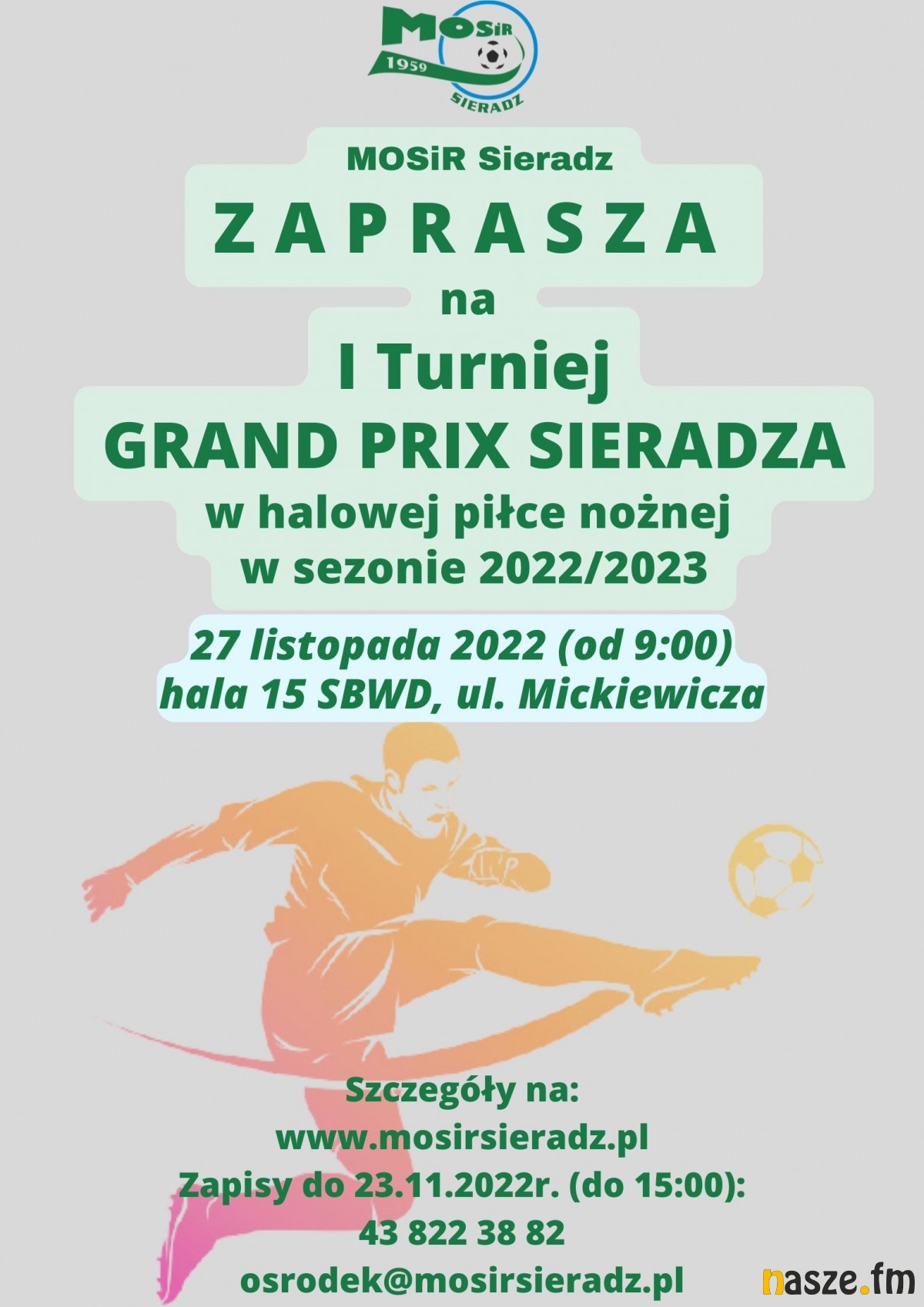 Miejski Ośrodek Sportu i Rekreacji w Sieradzu zaprasza na Grand Prix Sieradza w Halowej Piłce Nożnej. Pierwszy turniej odbędzie się 27 listopada.