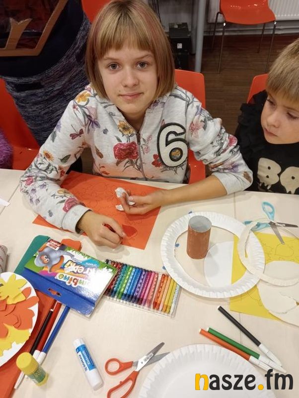 Dzieci z zapałem przystąpiły do pracy i wykonały jesienne witraże z rolek po papierze oraz z kartonu i kolorowych liści oraz inne prace plastyczne nawiązujące do jesieni, wykazując się pomysłowością, oryginalnością i zaangażowaniem. Warsztaty miały na celu zainspirowanie kreatywności u młodych uczestników, rozwijanie zdolności plastycznych, kształtowanie estetyki i zainteresowania tą porą roku. To było bardzo miło spędzone popołudnie wśród śmiechów i opowieści, które towarzyszyły zajęciom. Ciepła atmosfera warsztatów spowodowała, że czas upłynął bardzo szybko, a dzieci już dopytują o kolejne zajęcia.