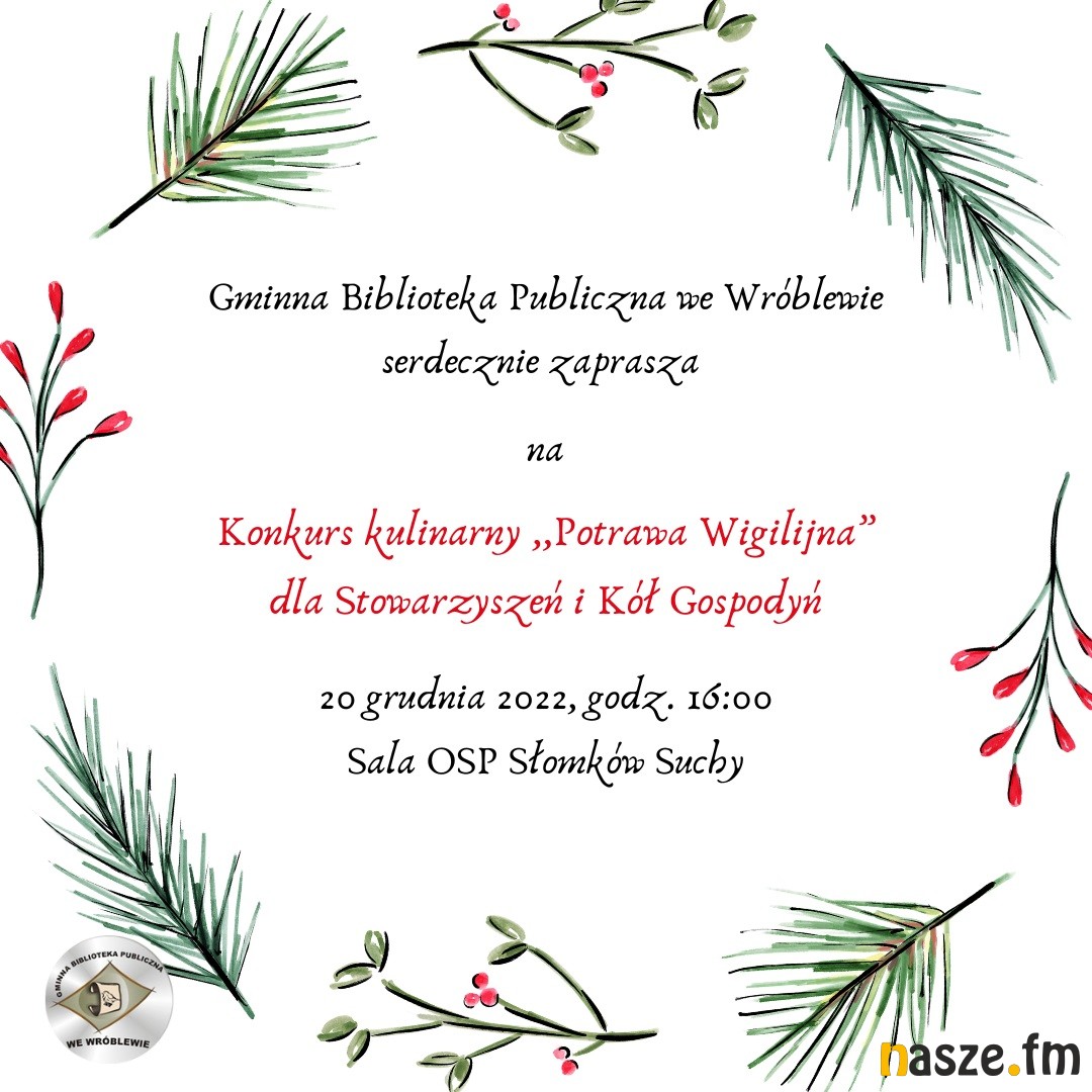 Gminna Biblioteka we Wróblewie organizuje konkurs kulinarny dla stowarzyszeń i kół gospodyń wiejskich z terenu gminy Wróblew. Konkurs z pierogami w roli głównej zostanie przeprowadzony 20 grudnia, początek o godz. 16.00 w sali OSP Słomków Suchy. Organizatorzy na zgłoszenia czekają do piątku 9 grudnia. Gościem i jurorem będzie Dominik Wróblewski.