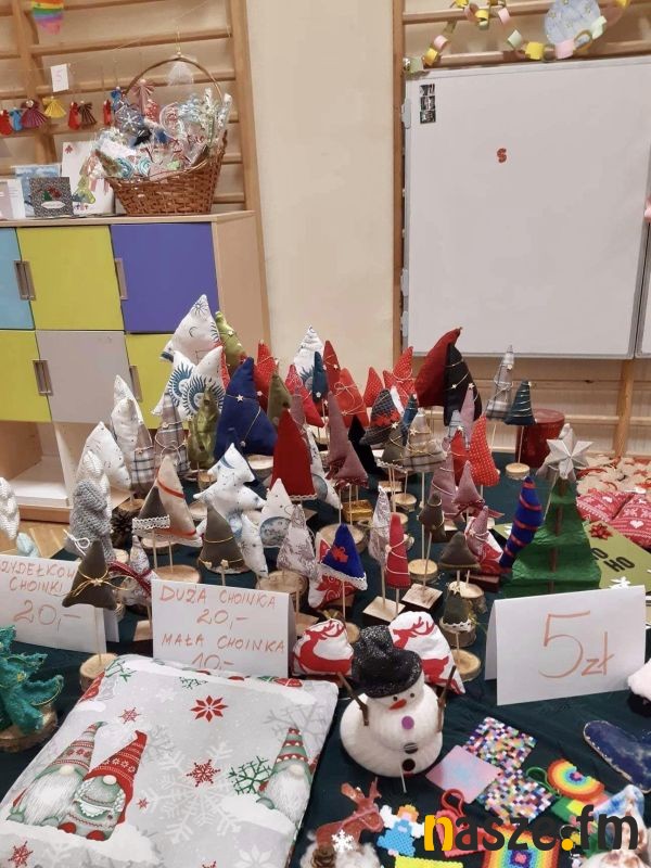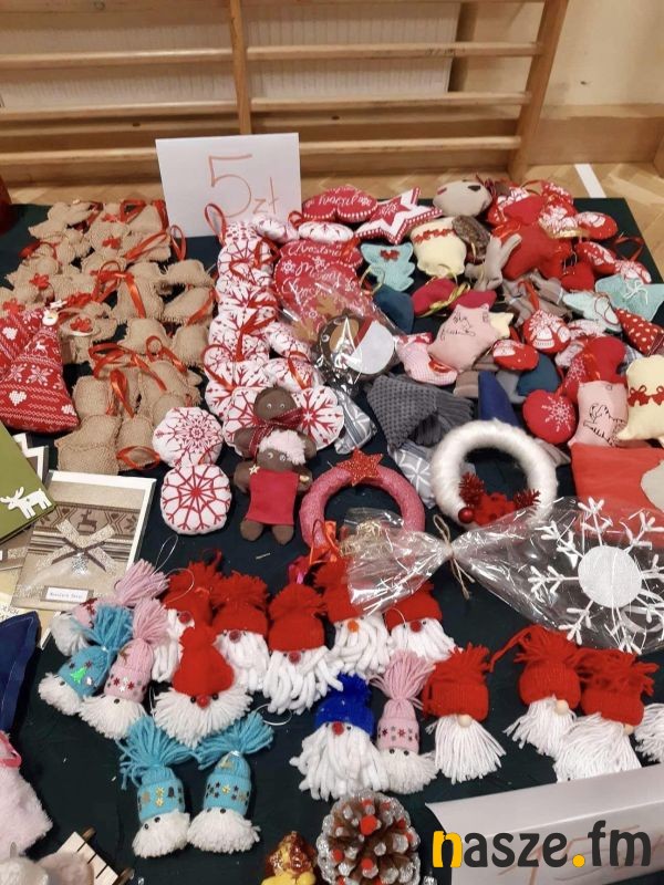 Na Kiermaszu kupić można było rękodzielnicze dzieła uczniów szkoły: stroiki, bombki, choinki, kartki świąteczne, świece zapachowe, własnoręcznie uszyte serduszka i choinki i wiele innych pięknych ozdób. Po atrakcjach można było odpocząć w kawiarenkach, w których na wszystkich czekały ciasta i herbata lub soki.