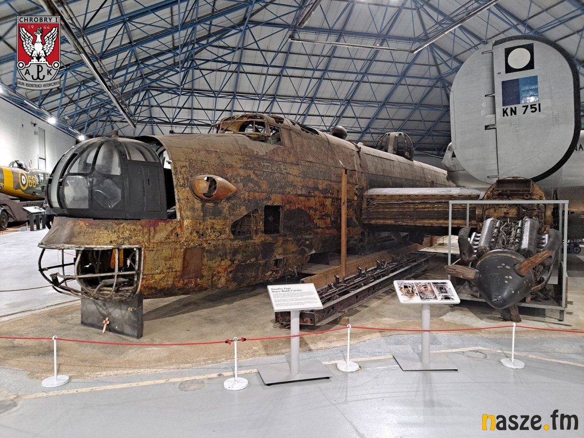 Pierwszym przystankiem na naszej drodze było Muzeum Królewskich Sił Powietrznych, które odwiedziliśmy 19 listopada. Prezentowanych jest tam kilkadziesiąt statków powietrznych związanych z historią RAF. Wśród nich jest eksponat szczególny. W hangarze poświęconym lotnictwu bombowemu umieszczono jeden z trzech zachowanych na świecie samolotów Handley Page Halifax. Jest to egzemplarz o numerze W1048 TL-S z 35 Dywizjonu RAF. 26 kwietnia 1942 r. brał udział w ataku na pancernik Tirpitz i został uszkodzony ogniem przeciwlotniczym. Lądował awaryjnie na zamarzniętej tafli jeziora Hoklingen w Norwegii i wkrótce zatonął. Wydobyto go dopiero w 1973 r. i jest eksponowany w stanie pierwotnym, w takim w jakim go odnaleziono. Co prawda prezentowana w RAF Museum maszyna to wersja wcześniejsza niż ta na której zginął Jerzy Kisielewicz, lecz jest to nieistotny szczegół. Możliwość obejrzenia z bliska samolotu typu Halifax jest niezwykła, a sama maszyna W1048 robi ogromne wrażenie.