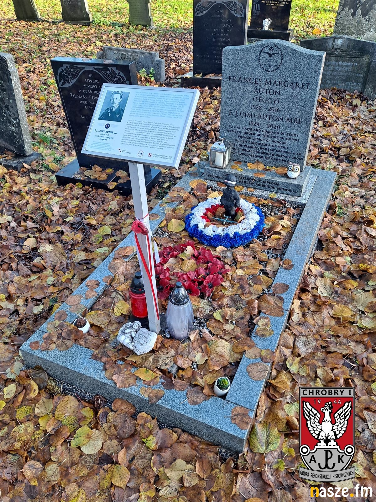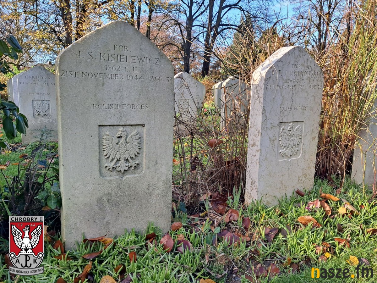 23 listopada, w ostatni dzień naszego pobytu w Wielkiej Brytanii, udaliśmy się na cmentarz polskich lotników w Newark. Jest to największy polski cmentarz lotniczy na świecie. Spoczywa na nim 351 członków personelu Polskich Sił Powietrznych. Na cmentarzu spoczywają również żołnierze Brytyjskiej Wspólnoty Narodów. Liczne polskie groby, już nieco późniejsze, rozsiane są również wokół cmentarza lotników. Jeżeli dotrzemy do Newark koleją to na miejsce wiedzie prosta droga. Po wyjściu ze stacji Newark Northgate należy przejść ulicą Appleton Gate, skręcić w Queens Road oraz dalej prosto Friary Road i Sherwood Ave. Skręcamy w ulicę Balderton Gate i po krótkim spacerze znaki wskazują nam cmentarną bramę. Po przejściu głównej alei w końcowej części nekropolii odnajdziemy interesujące nas miejsce. Nie sposób je pomylić, ponieważ otoczone jest niskim żywopłotem. Na cmentarzu pochowano również m.in. ofiary katastrofy gibraltarskiej, spadochroniarzy Samodzielnej Brygady Spadochronowej. Znaczna część mogił lotniczych to polegli z dywizjonów bombowych 300 "Ziemi Mazowieckiej", 301 "Ziemi Pomorskiej", 304 "Ziemi Śląskiej" oraz 305 "Ziemi Wielkopolskiej". Spoczywa tutaj również wielu lotników, którzy stracili życie w katastrofach w jednostkach szkoleniowych i pomocniczych. Wśród nich jest por. pil. Jerzy Kisielewicz oraz sześciu towarzyszy jego ostatniego lotu odbytego 21 listopada 1944 r. Ich nagrobki odnajdziemy w ostatnich rzędach od strony południowej cmentarza.