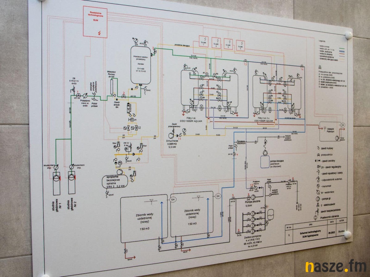 Przebudowany został istniejący budynek stacji uzdatniania wody. W nowym wnętrzu pojawił się nowoczesny osprzęt, zbiorniki, pompy, filtry, sprężarki, system sterowania, a na zewnątrz stanęły dwa terenowe zbiorniki o pojemności 150 tys. litrów każdy. To najbardziej widoczne zmiany.