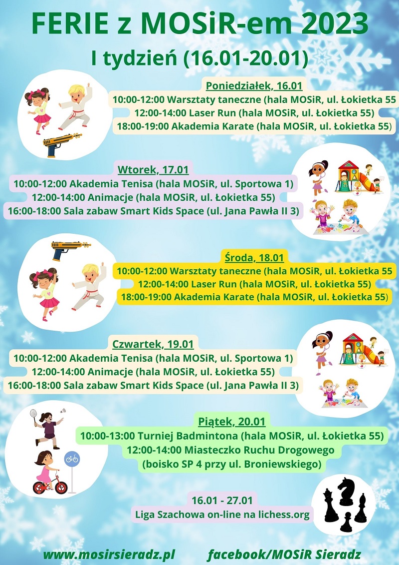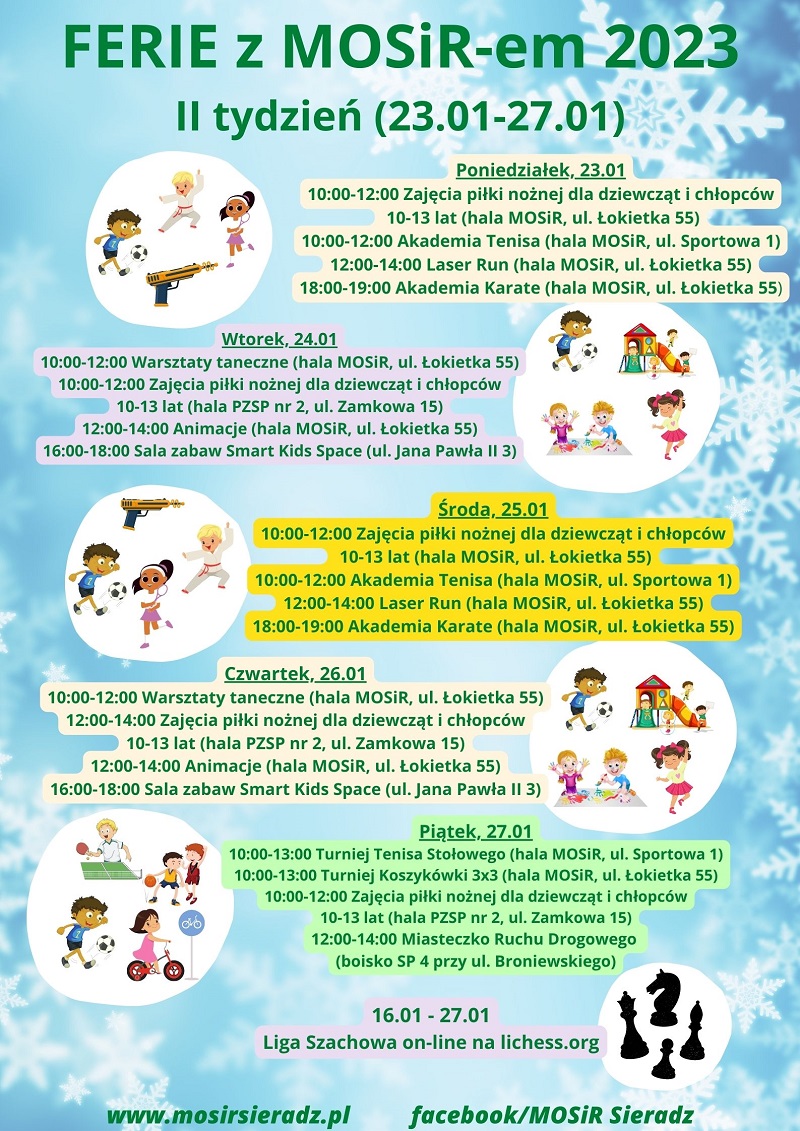 - dzieci z klas 4-5, (23.01.2023-27.01.2023 godz. 9.00-12.00)