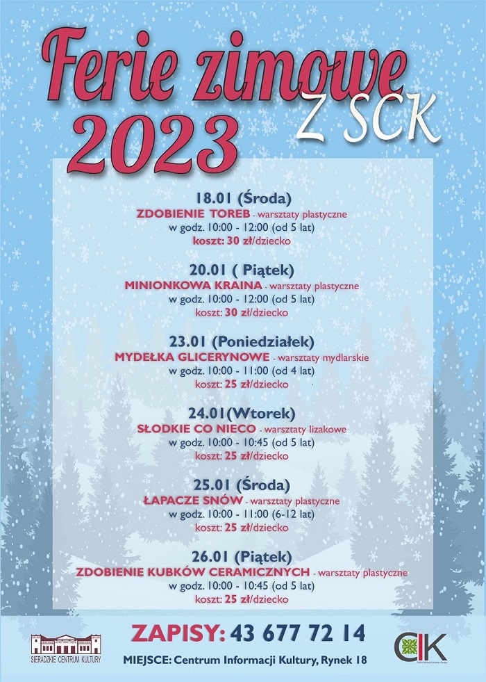 Podczas ferii Sieradzkie Centrum Kultury zaprasza również na: