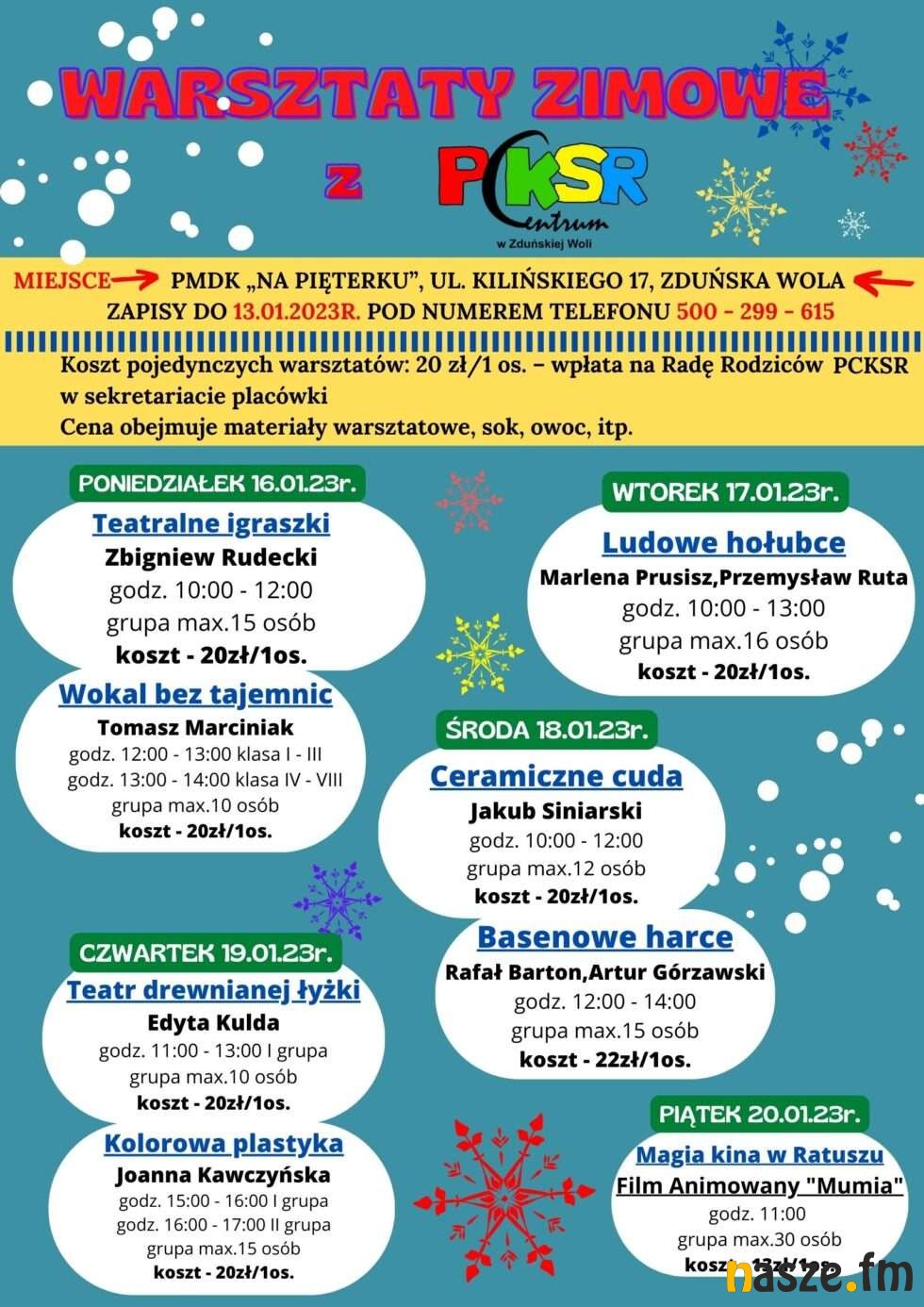 Informacje i zapisy na warsztaty pod nr tel. 43 677 72 14. (poniedziałek-piątek 9:00-15:00)