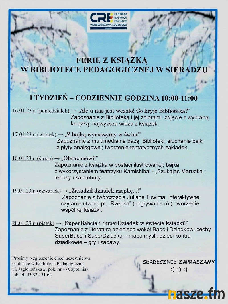 W Łasku w bibliotece będą zajęcia z teatrzykiem, czy spotkanie poświęcone Australii adresowane do grup przedszkolnych. Z kolei w filii sieradzkiej BP w Wieluniu najmłodsi będą mieli zajęcia teatralne, ale dowiedzą się też co zrobić, gdy np. zgubią się w tłumie. Z kolei w Pajęcznie będzie m.i. feryjny escaperoom w bibliotece.