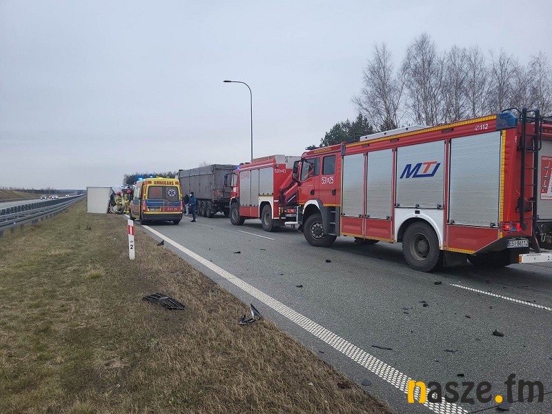 Na miejscu pracują policjanci, strażacy oraz ratownictwo medyczne. Jak informuje GDDKiA utrudnienia w ruchu na S-8 na Łódź pomiędzy węzłami Sieradz Południa i Sieradz Wschód mogą potrwać do godz. 14.30. W tej chwili trwa próba udrożnienia jednego pasa ruchu na Łódź.