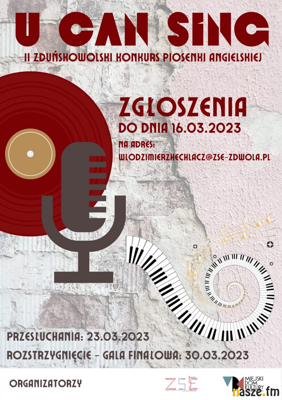 Ruszyły zgłoszenia do drugiej edycji Zduńskowolski Konkurs Piosenki Angielskiej "U CAN SING". Pierwsza edycja odbyła się w październiku ubiegłego roku w Miejskim Domu Kultury Ratusz.