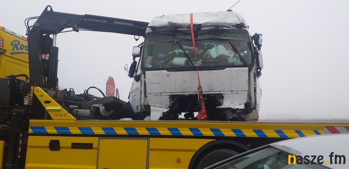 Jak informowała policja w Sieradzu do zderzenia ciężarówek doszło po tym, jak 66-letni kierowca renault nie zachował bezpiecznej odległości od jadącego przed nim iveco kierowanego przez 22-latka i uderzył w tył tego pojazdu.