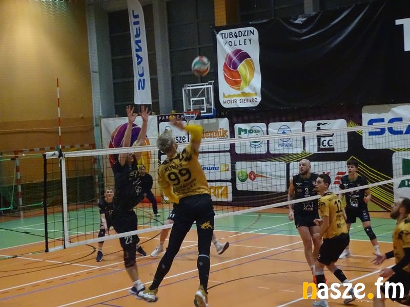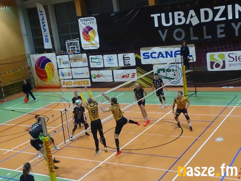 W pierwszym secie sieradzanie byli znacznie słabsi od rywali i przegrali 17:25. Kolejna partia układała się korzystniej dla gospodarzy, którzy prowadzili już 8:5. Później powiększyli jeszcze przewagę do pięciu punktów. Przy stanie 24:20 sieradzanie zmarnowali dwie piłki setowe. W kolejnej akcji Kamil Kosz zaatakował po prostej wzdłuż linii, dzięki czemu Tubądzin Volley wygrał 25:22.