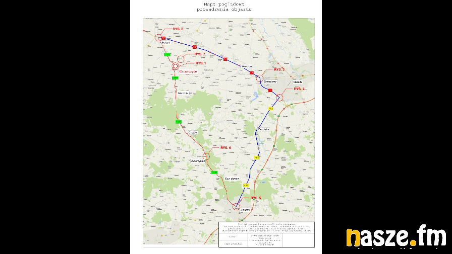 Oznakowanie tymczasowe kierujące na objazdy jest już ustawione. Jadący od strony Złoczewa będą musieli jechać drogą wojewódzką nr 482 w kierunku Sieradza i dopiero stamtąd kierować się w stronę Błaszek.