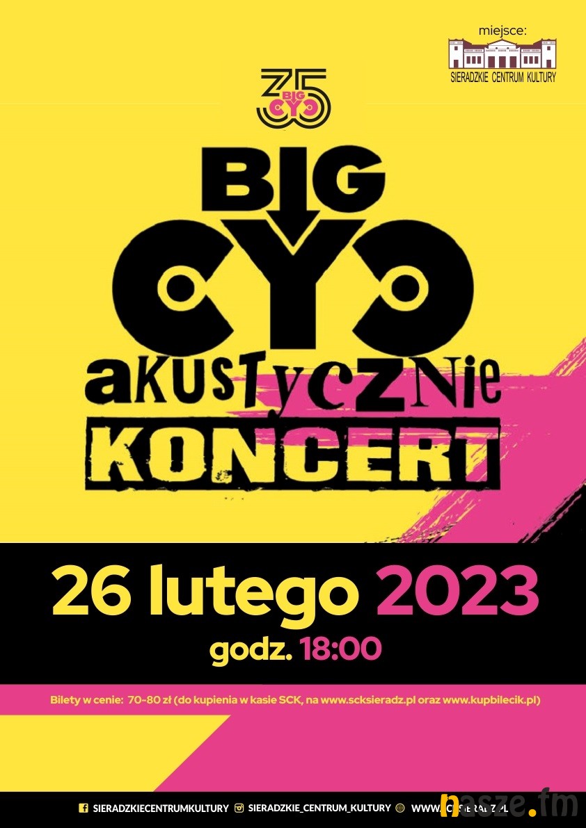 Takie oblicze Big Cyca znanego z ostrego rockowego grania może być absolutnym zaskoczeniem, jednak dla wszystkich fanów dobrej muzyki rockowej to pozycja obowiązkowa. W programie koncertu usłyszycie na pewno: Makumbę, Dres, Świat wg Kiepskich, Rudy się żeni, Facet to świnia, Guma. By się dowiedzieć co jeszcze rockandrollowa ekipa Big Cyc w wersji akustycznej warto wybrać się na koncert.