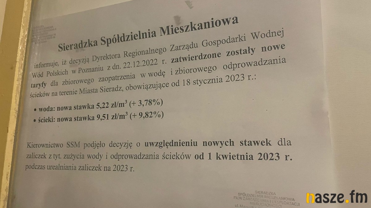 Natomiast w przypadku Sieradzkiej Spółdzielni Mieszkaniowej podwyżka zaliczek, która ma wejść w życie od 1 kwietnia tego roku, dotyczy taryf za wodę oraz odbiór ścieków. W ocenie prezes SSM Stefanii Gąsiorowskiej - decyzja dyrektora Regionalnego Zarządu Gospodarki Wód Polskich w Poznaniu w sprawie nowych taryf nie oznacza poważnych uciążliwości finansowych.