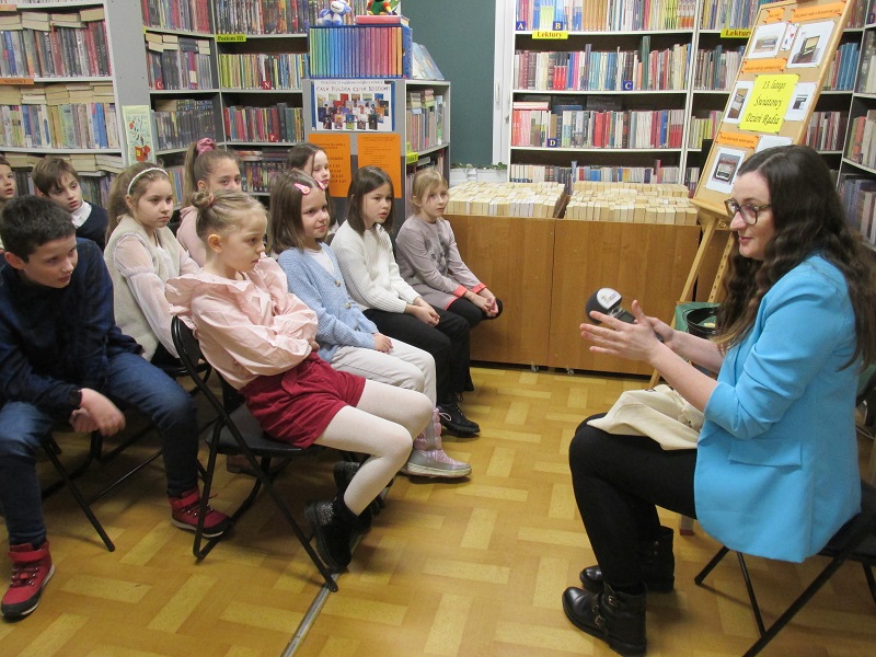 Spotkanie w Filii nr 3 Miejskiej Biblioteki Publicznej w Sieradzu miało charakter lekcji o radiu. Klaudia Pawlak zabrała ze sobą najbardziej charakterystyczne sprzęty radiowca: słuchawki czy sprzęt nagrywający. Dzieci próbowały odgadnąć do czego służą poszczególne przedmioty. Dowiedziały się sporo na temat pracy dziennikarza, pisania artykułów, telefonu alarmowego czy wywiadów ze znanymi osobami. Nie zabrakło wspólnych zdjęć, życzeń i śpiewu: