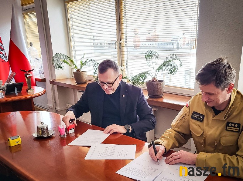 Przedstawiciele Komendy Powiatowej Państwowej Straży Pożarnej oraz druhowie z OSP Sieradz spotkali się z Pawłem Osiewałą, prezydentem miasta. Podczas spotkania podpisano aneks do uzgodnienia związanego z udziałem strażaków ochotników w Krajowym Systemie Ratowniczo-Gaśniczym.
