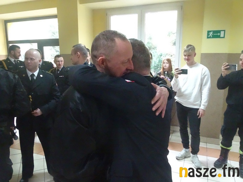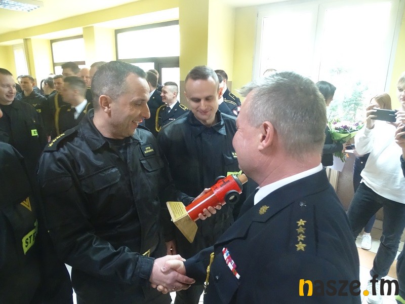 Po uroczystej zbiórce, już na "spocznij", strażacy składali byłemu od dziś dowódcy JRG liczne podziękowania za lata wspólnej służby. Życzenia pomyślności i sukcesów w służbie odbierał też następca D. Rudeckiergo.