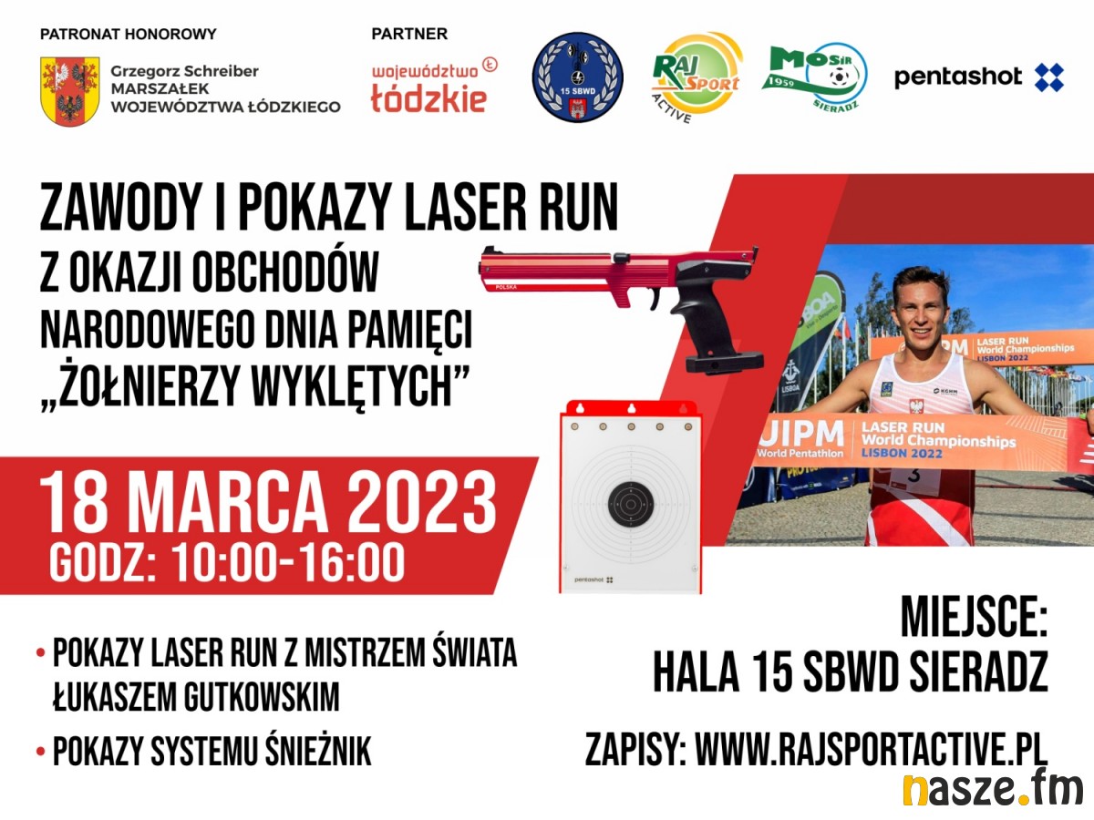 W najbliższą sobotę w hali 15 Sieradzkiej Brygady Wsparcia Dowodzenia po raz pierwszy w Sieradzu odbędą się „Zawody i pokazy laser run z okazji obchodów Narodowego Dnia Pamięci Żołnierzy Wyklętych”. Organizator Rajsport Active wraz ze współorganizatorem 15 Sieradzką Brygadą Wsparcia Dowodzenia w Sieradzu zapraszają udziału oraz podziwiania zmagań uczestników.