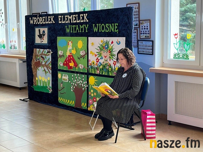 Przedszkolaki przepięknie zaśpiewały piosenki o tematyce wiosennej witając nową porę roku. W tym wyjątkowym dniu społeczność przedszkola miała również okazję gościć Annę Kulczyńską,radną gminy Wróblew, która przeczytała przedszkolakom opowiadanie Hanny Łochockiej pt. Elemelek w nocnej porze, podróżuje, aż nad morze.