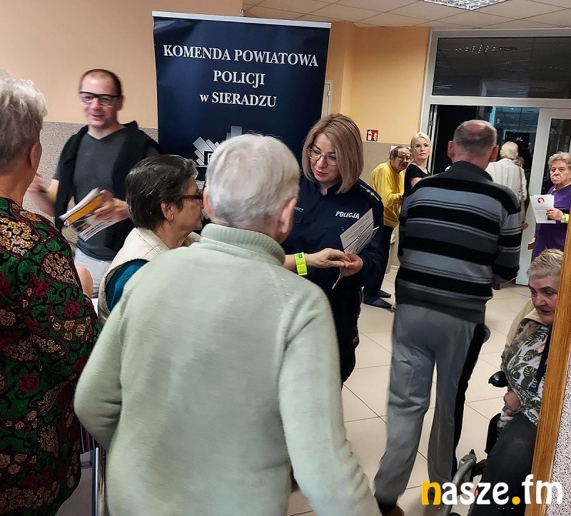 Jakie są metody działania oszustów, jak uchronić się przed nimi i jak być bezpiecznym na drodze – to wiodące tematy spotkanie, które przeprowadzili sieradzcy policjanci oraz przedstawiciel Wojewódzkiego Ośrodka Ruchu Drogowego z seniorami z Domu Pomocy Społecznej. Działania te wpisują się w realizowane akcje profilaktyczne „Bądź czujny, nie daj się nabrać oraz „Na drodze-patrz i słuchaj”.