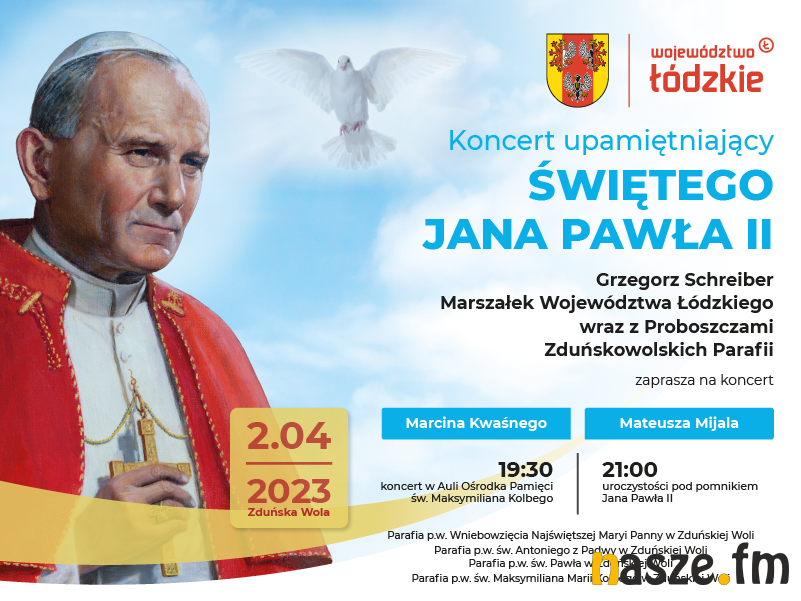 2 kwietnia przypada 18. rocznica śmierci świętego Jana Pawła II. W Zduńskiej Woli odbędzie się koncert upamiętniający Papieża - Polaka.