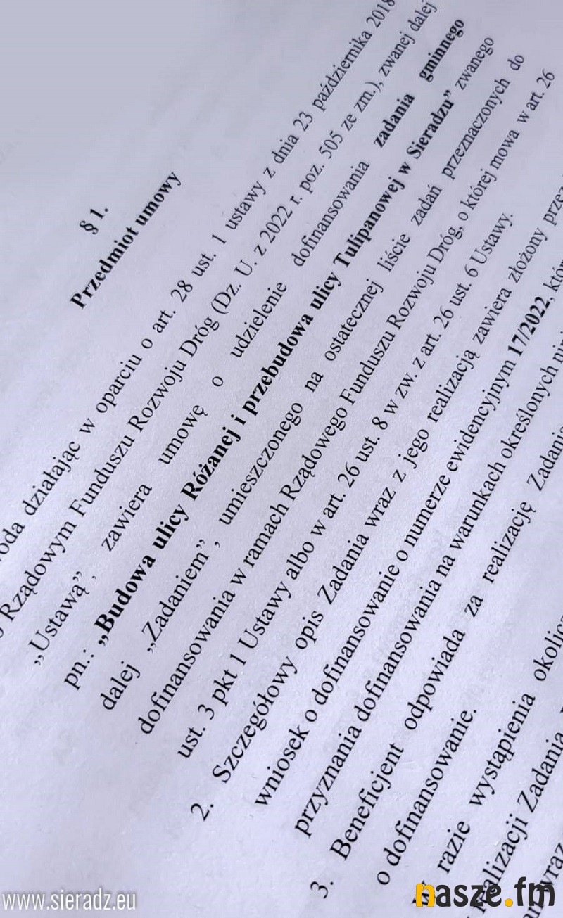 Paweł Osiewała, prezydent Sieradza, podpisał umowę na dofinansowanie kompleksowej przebudowy ulic Różanej i Tulipanowej.