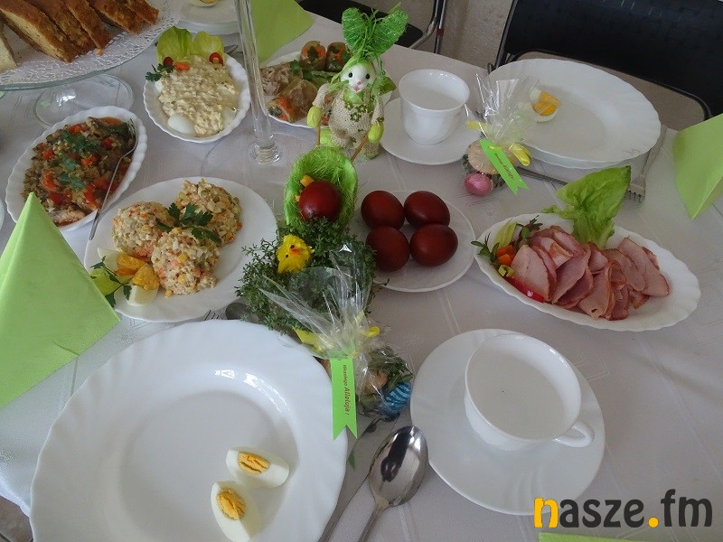 Na świątecznym stole królował dziś żurek, ale też kiełbasa, świąteczne jaja i ciasta. Na koniec każdy otrzymał też dyngusa, czyli wielkanocną paczkę. W ich przygotowaniu pomogło kilka fundacji.