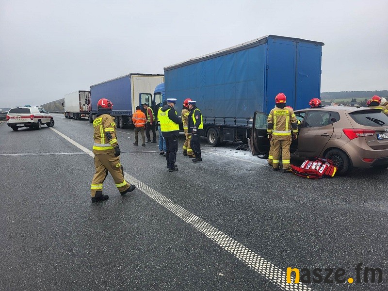 Wszystko zaczęło się od Toyoty Proace, której kierowca najprawdopodobniej zasnął za kierownicą i na wysokości miejscowości Sięganów uderzył w bariery.
