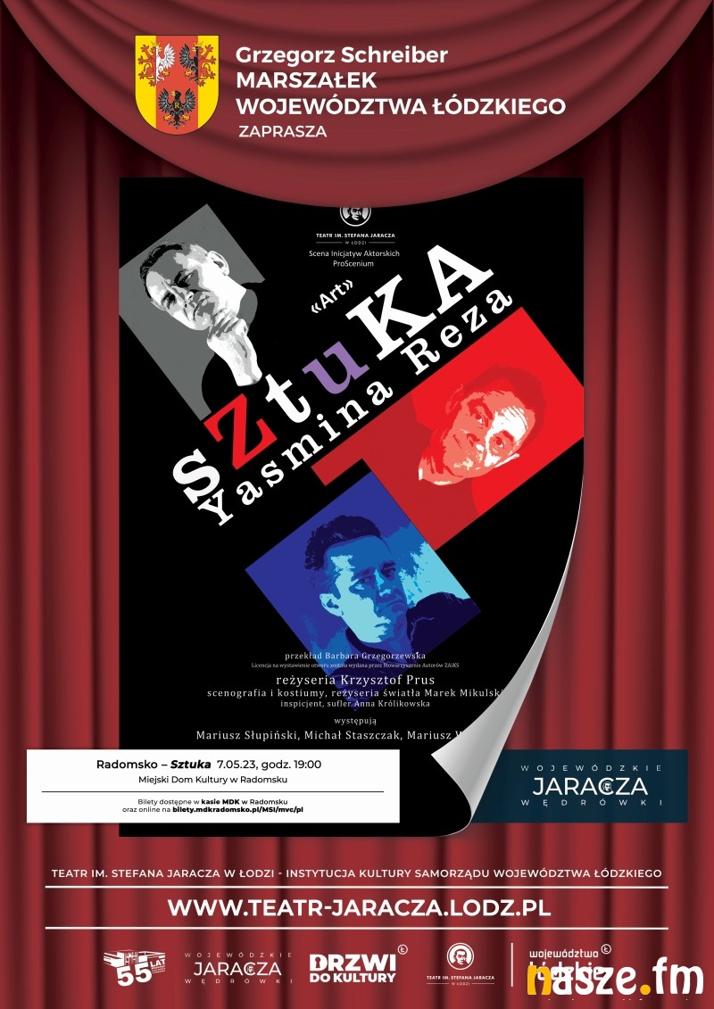 A już 7 maja br. o godz. 19:00 kolejna odsłona Wojewódzkich Jaracza Wędrówek. Tym razem artyści Teatru im. Stefana Jaracza wystąpią w Miejskim Domu Kultury w Radomsku w premierowym spektaklu komediowym pt.: "Sztuka" w reżyserii Krzysztofa Prusa. Na przedstawienie zaprasza Grzegorz Schreiber Marszałek Województwa Łódzkiego.