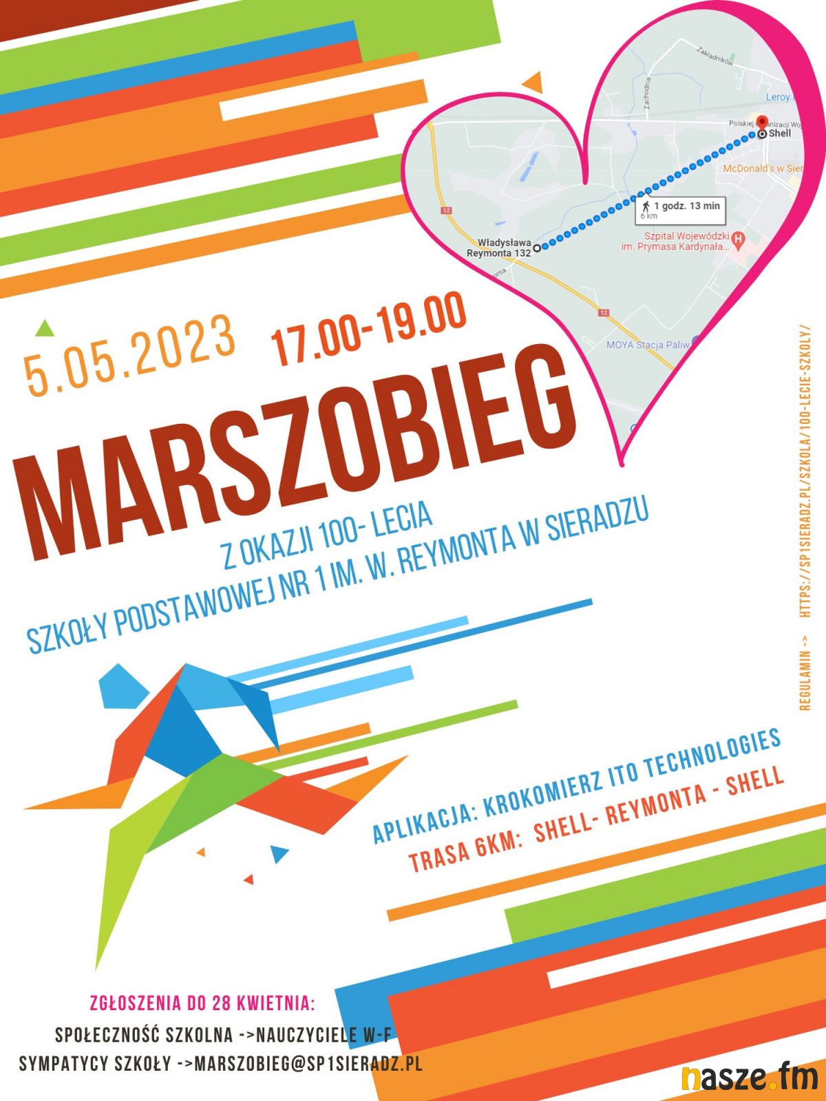 Inauguracyjny marszobieg będzie wiódł ulicą Reymonta i ma mieć długość 6 km. Impreza potrwa do 19:00. Dziesięciu najszybszych uczniów otrzyma nagrody. Dla wszystkich uczestników przewidziano wodę i słodki poczęstunek.