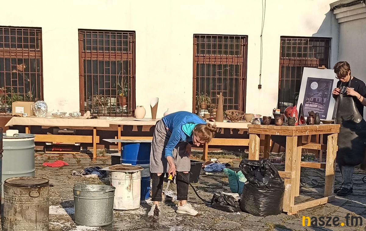 Swoich sił przed sztalugą mogli też spróbować odwiedzający sieradzkie BWA Na dziedzińcu galerii odbył pokaz wypału plenerowego ceramiki metodą raku. Można też było zwiedzać pracownię ceramiczną, działającą przy BWA i prezentowane w galerii wystawy.
