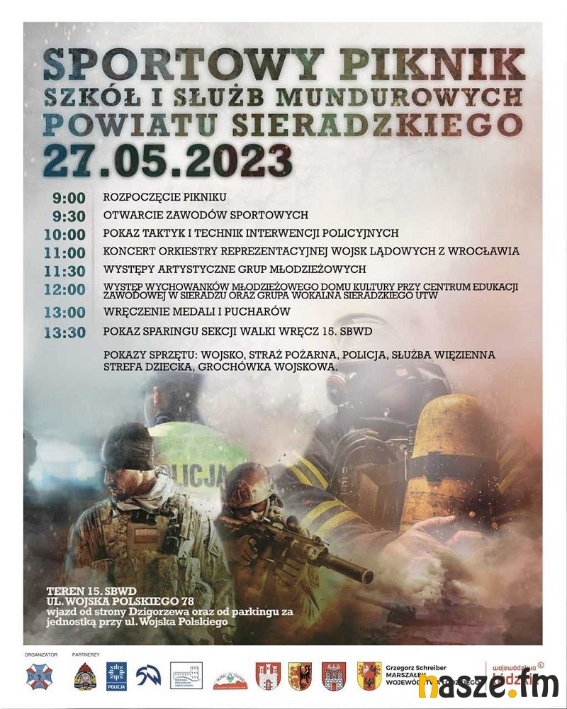 15 Sieradzka Brygada Wsparcia Dowodzenia zaprasza na kolejne ciekawe wydarzenie. Tym razem to Sportowy Piknik Szkół i Służb Mundurowych Powiatu Sieradzkiego. Wydarzenie będzie miało miejsce w sobotę 27.05. br. Wstęp wolny.
