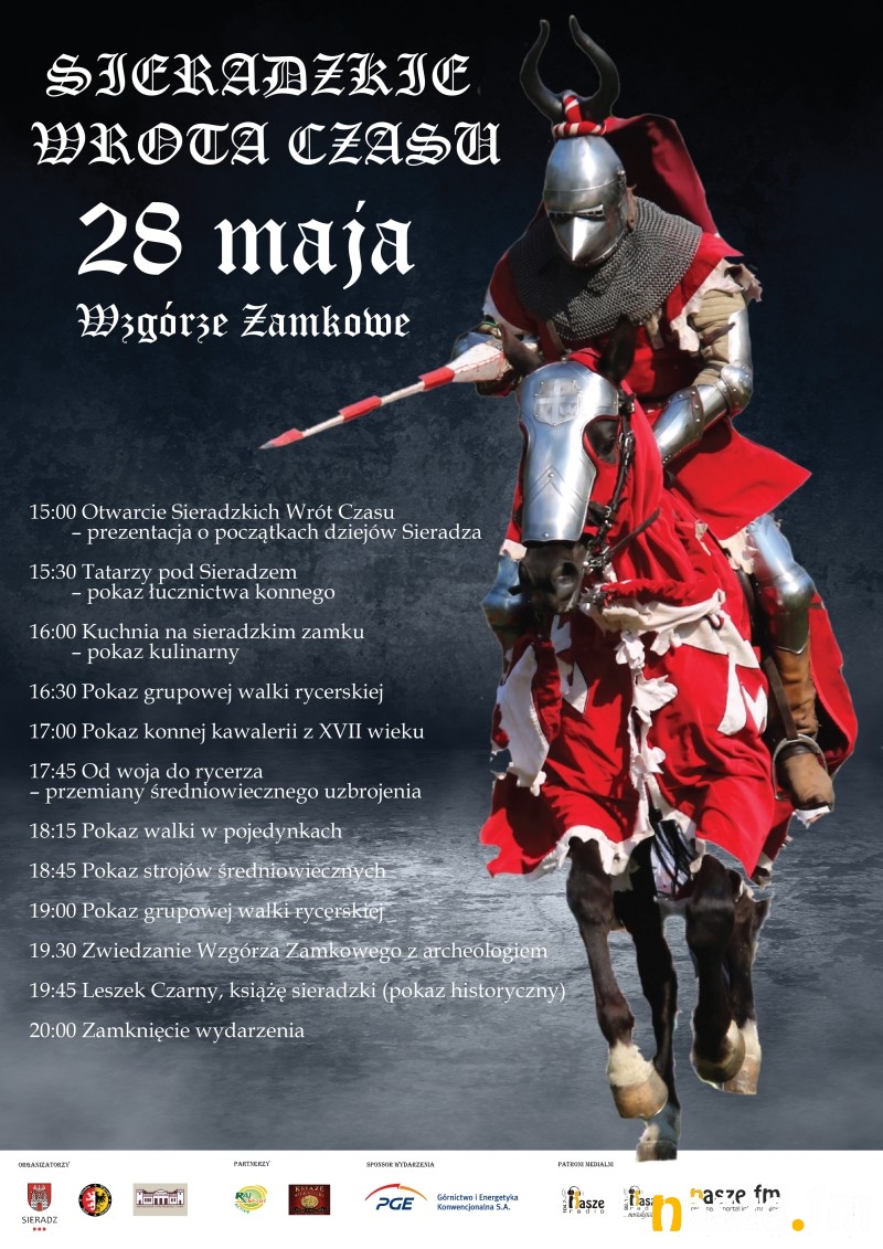 Sieradzkie Wrota Czasu. Przenieś się z nami w czasy nie zawsze mrocznego średniowiecza. Pokazy łucznicze, konne, zwiedzanie Wzgórza Zamkowego z archeologiem, stoiska rzemieślnicze i gastronomiczne oraz oczywiście to, na co wszyscy czekają czyli walki rycerskie. 28 maja zapraszamy na Wzgórze Zamkowe w Sieradzu.