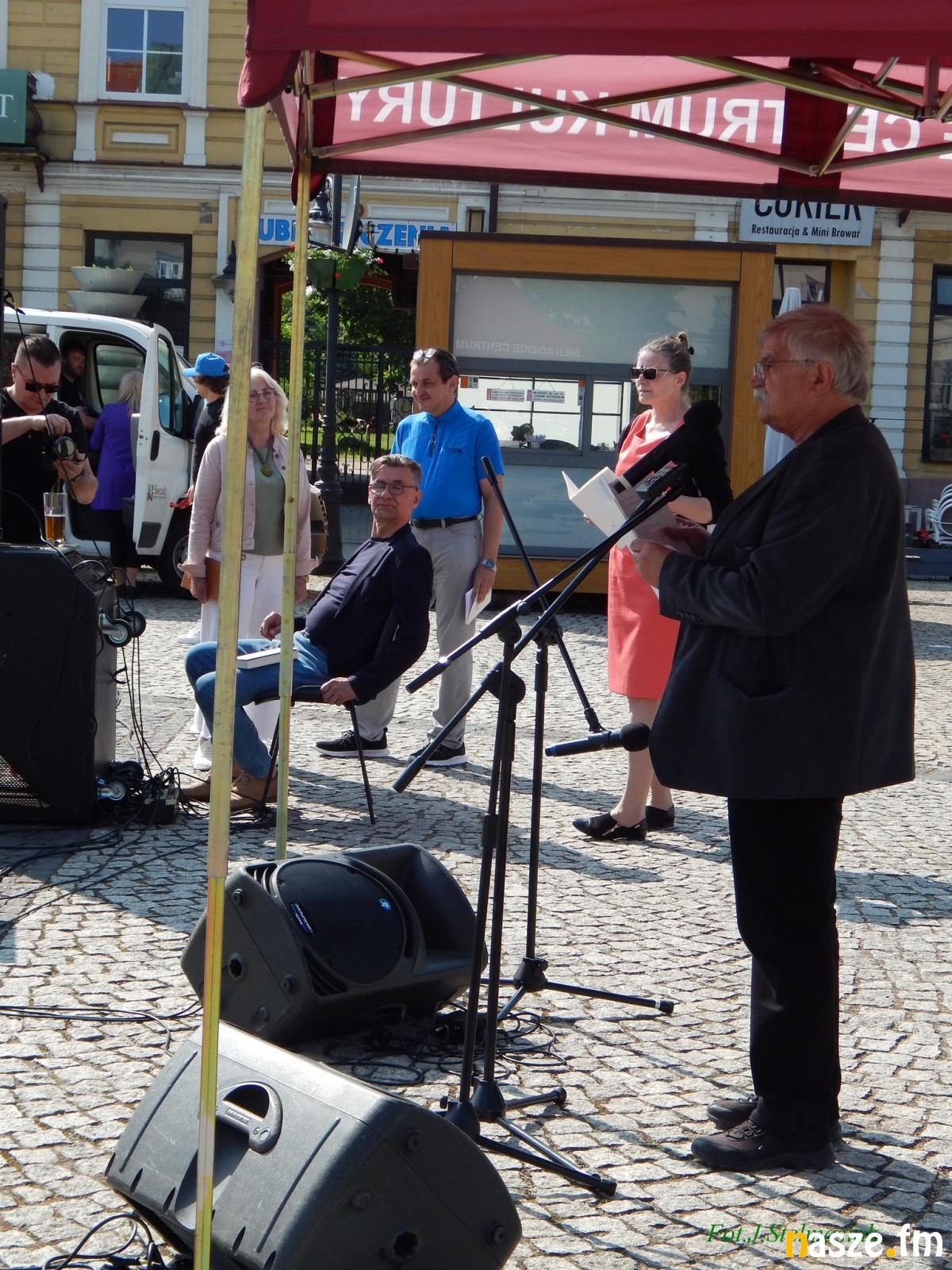 Po gorącej dyskusji uczestnicy festiwalu poszli na spacer po Sieradzu. O historii i zabytkach naszego miasta opowiadał Wiesława Sujecka, przewodniczka PTTK. Spacer zakończyli na sieradzkim Rynku, gdzie poeci czytali wiersze.