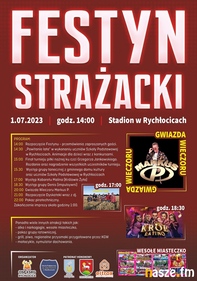 Mamy zaproszenie dla czytelników nasz.fm na Festyn Strażacki w Rychłocicach. W programie m.in. część koncertowa. Wstęp wolny.