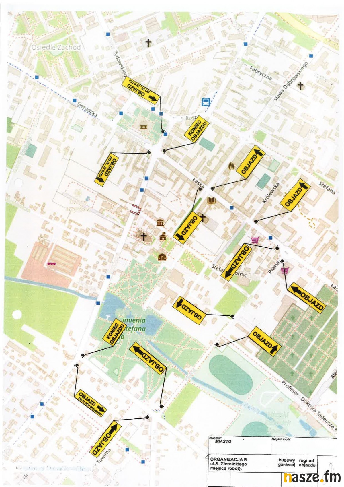 Taka konieczność powstała na czas prowadzonych prac w związku z budową nowej drogi od ul. Stefana Złotnickiego do ul. Komisji Edukacji Narodowej. Od najbliższego poniedziałku, 3 lipca, wprowadzona zostanie czasowa organizacja ruchu, która będzie obowiązywać do 15 lipca. Przejazd ul. Kościelną będzie niemożliwy, ale zaplanowano objazdy, które prowadzić będą ulicami: Łaską, Piwną oraz Dolną. Zarówno objazdy, jak i zamknięte skrzyżowanie będą oznakowane.