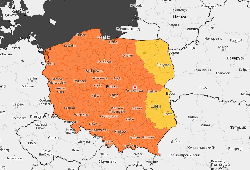 - W środowe popołudnie nad Polskę od zachodu nasunie się aktywny front chłodny, związany z niżem „Poly” nad Danią. Z powodu dużego kontrastu termicznego mas powietrza, które będzie rozdzielał front, w jego strefie będą mogły rozwinąć się gwałtowne i dość dobrze zorganizowane burze z niebezpiecznymi zjawiskami. Dodatkowo, przed frontem, w gorącej (temperatura maksymalna w centralnej i wschodniej Polsce wzrośnie do 29-30°C) i bardzo wilgotnej masie powietrza, może utworzyć się jeszcze jedna strefa burz. Pogoda będzie bardzo dynamiczna. W czasie burz mogą występować ulewne opady deszczu, miejscami nawet do 30-35 mm i grad. Jednak szybkie przemieszczanie się frontu sprawi, że zagrożenie zwiększonymi kumulacjami sum opadów jest małe. Mimo wszystko, nie można wykluczyć lokalnych podtopień, szczególnie w miastach. Największym zagrożeniem związanym z burzami będą bardzo silne, a nawet huraganowe porywy wiatru. Mogą one wynosić nawet 100 km/h, szczególnie jeśli burze utworzą strukturę liniową z frontem szkwałowym. Warunki do rozwoju takich zjawisk są prognozowane w północno-zachodniej i centralnej części kraju - tak opisują prognozowane na dziś zjawiska synoptycy z IMGW.