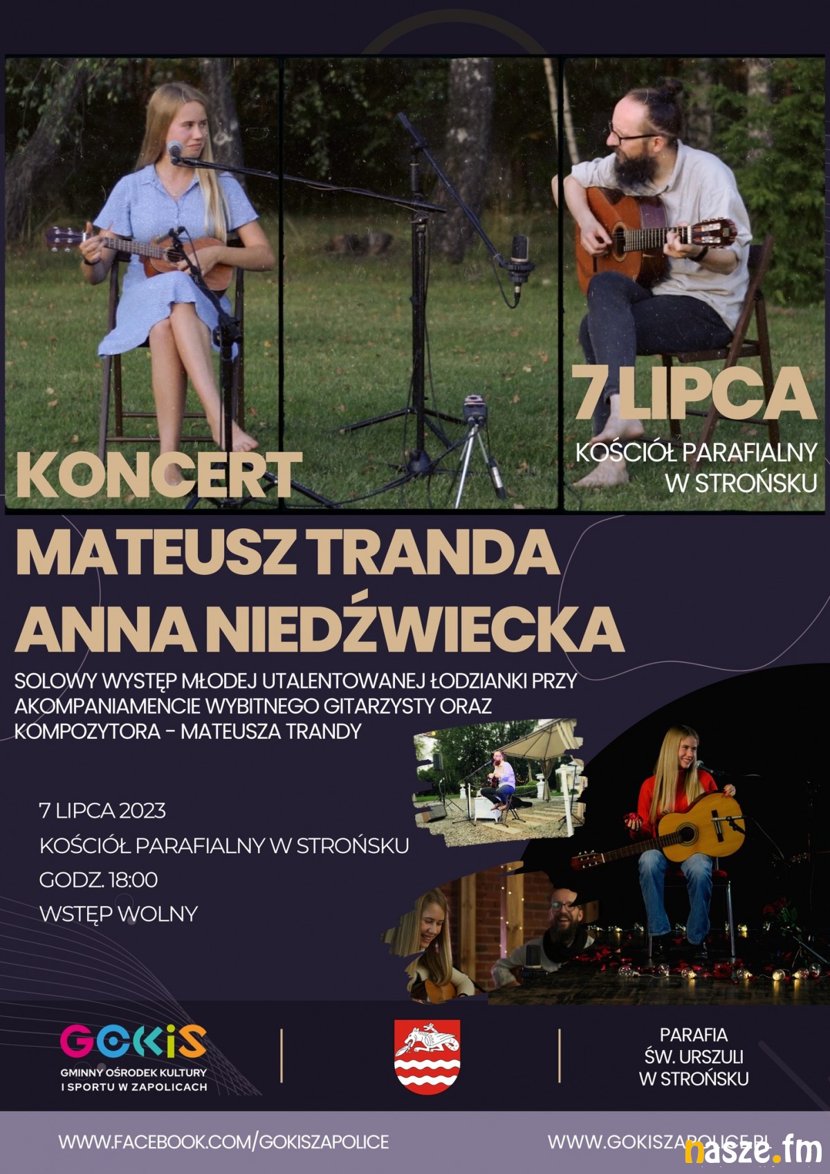Gminny Ośrodek Kultury i Sportu w Zapolicach zaprasza jutro, 7 lipca, na koncert do Strońska. Na plac przy kościele parafialnym wystąpi Anna Niedźwiecka przy akompaniamencie Mateusza Trandy.