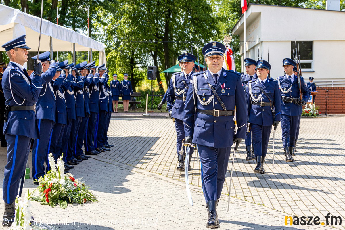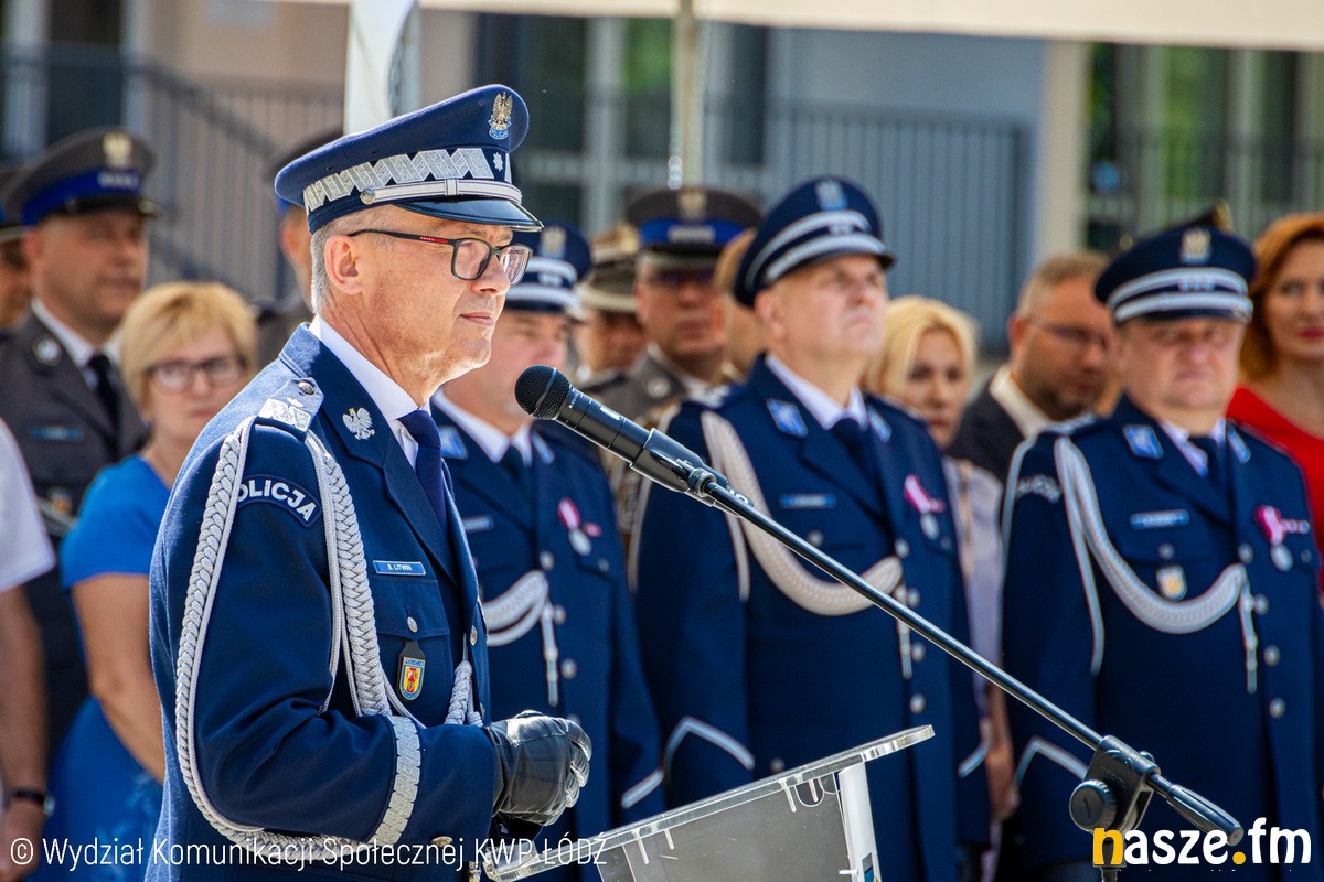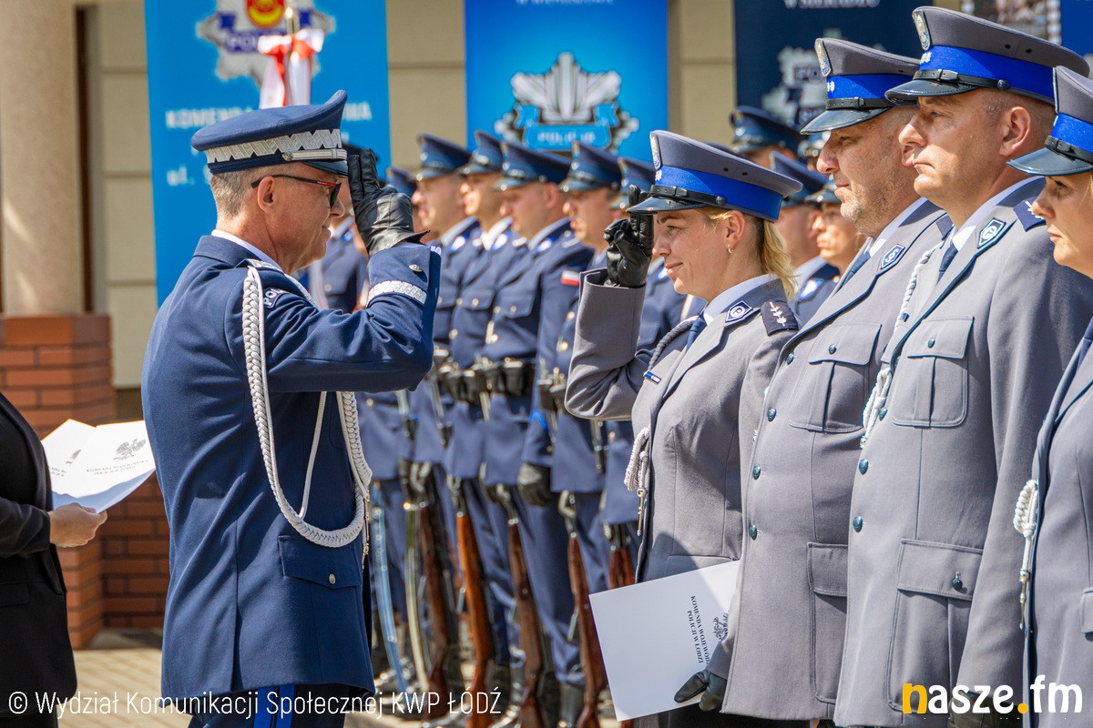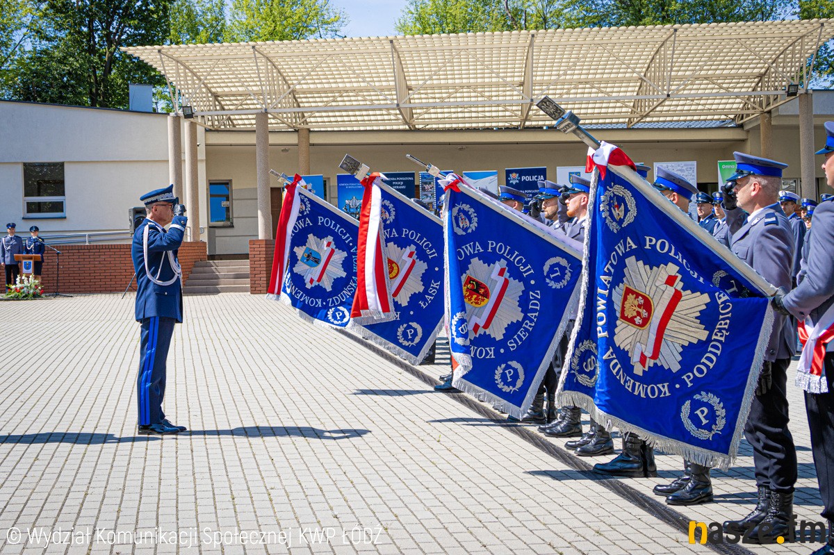 Po tej najważniejszej części uroczystości głos zabrał Komendant Wojewódzki Policji w Łodzi nadinsp. Sławomir Litwin, który podkreślił bardzo dobre wyniki pracy policjantów oraz wysokie oceny społeczne ich służby. Słowa uznania i podziękowania za służbę do wszystkich zgromadzonych na uroczystości policjantów i pracowników Policji skierowała również Hanna Iwaniuk, Starosta Powiatu Zduńskowolskiego.