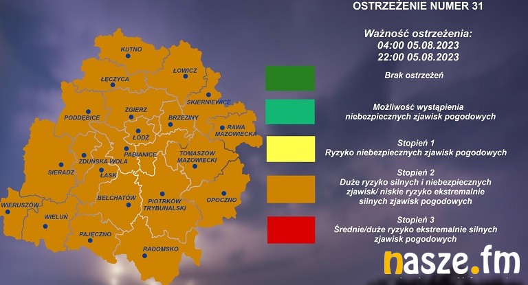 Czas obowiązywania: 05.08.2023 r. w godz. 04:00 - 22:00