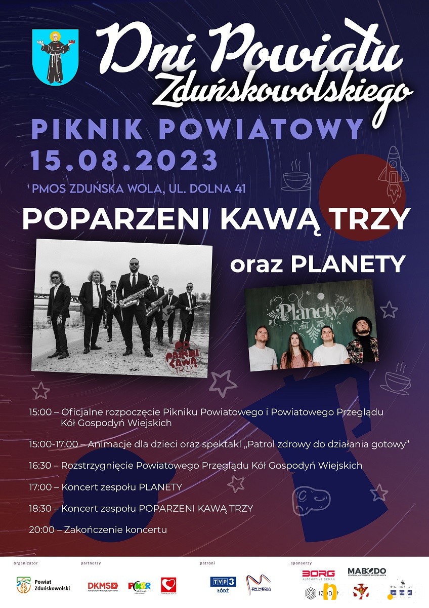 Jutro, 15 sierpnia, Powiat Zduńskowolski zaprasza na swoje święto w ramach Powiatowych Dni ku czci św. Maksymiliana Marii Kolbego. Tego dnia odbędzie się oficjalna uroczystość oraz wydarzenie kulturalno-rozrywkowe - Piknik Powiatowy z wieloma atrakcjami.
