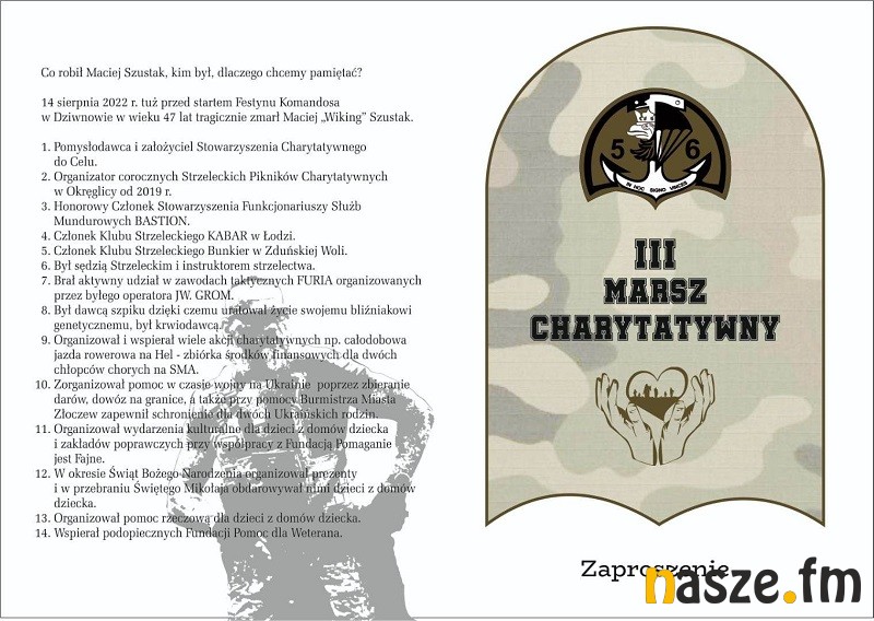 - Osobiście nie znałem Maćka, ale o jego historii opowiadał u nas wspólny znajomy i to on wyszedł z inicjatywą, by tym razem nasz spływ kajakowy zorganizować ku pamięci Maćka. To w podziękowaniu za to co przez te wszystkie lata swojego życia robił dla innych ludzi, a robił wiele. Wspomnę tylko, że był dawcą szpiku i znaleziono jego genetycznego bliźniaka, któremu uratował życie. Organizował charytatywne pikniki strzeleckie, a po wybuchu wojny w Ukrainie pojechał też z pomocą humanitarną na granicę. Chcemy to wszystko przypomnieć i w ten sposób upamiętnić Maćka - mówi Mariusz Goszczycki, jeden ze współorganizatorów marszu i spływu.