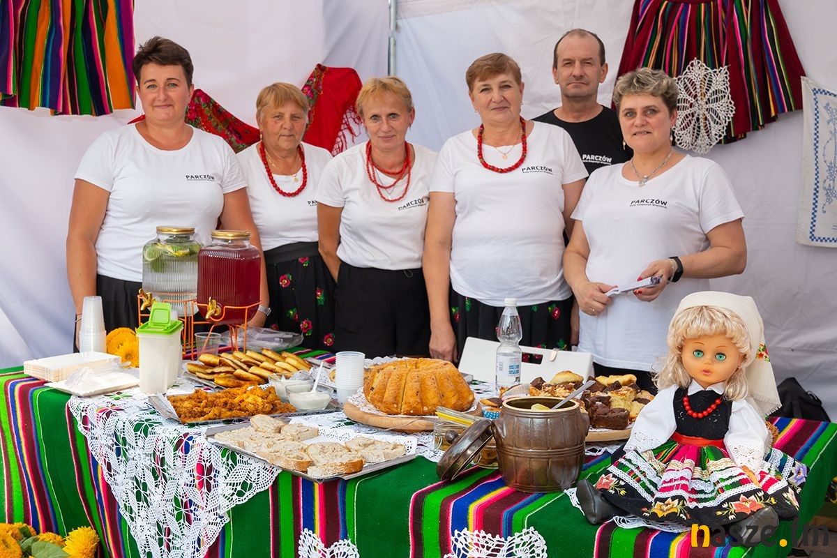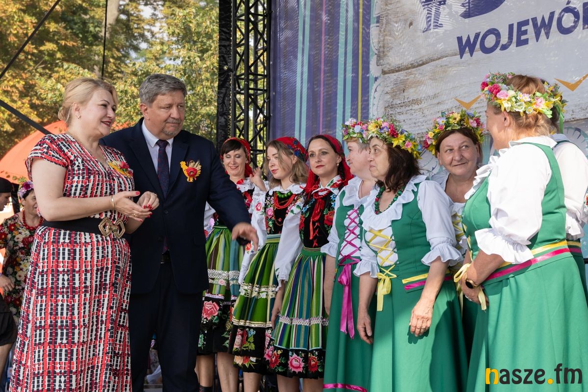 Razem z marszałkiem, dożynkowym chlebem częstowali mieszkańców starostowie dożynek: Ewa Skalska ze wsi Parczów w gm. Białaczów oraz Andrzej Stańczyk z Kalinkowa w gm. Aleksandrów.